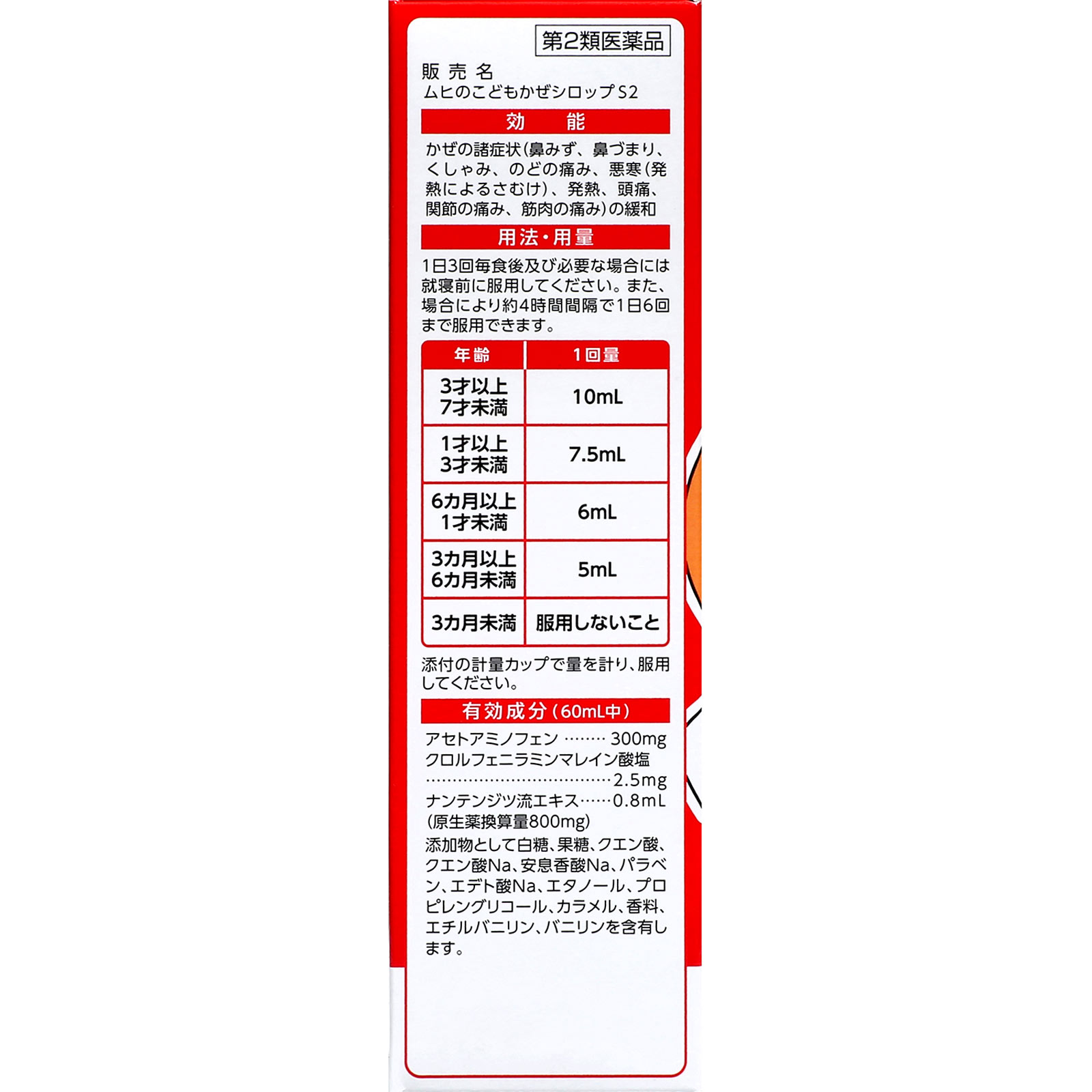 熱や鼻どのつらいかぜの諸症状に効果を発揮する総合感冒薬。ムヒのこどもかぜシロップS2は、鼻みず、のどの痛み、発熱などのかぜの諸症状に効果のある成分を配合したお子さま用のかぜ薬です。●お子さま好みの「イチゴ味」のシロップ剤です。「アンパンマン」のデザインで、小さなお子さまにも飲ませやすいように工夫してあります。●3カ月から7才未満のお子さま用として開発したかぜ薬です。