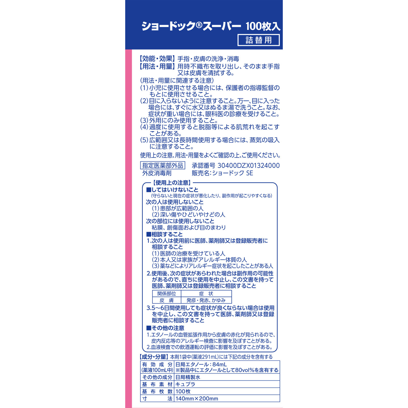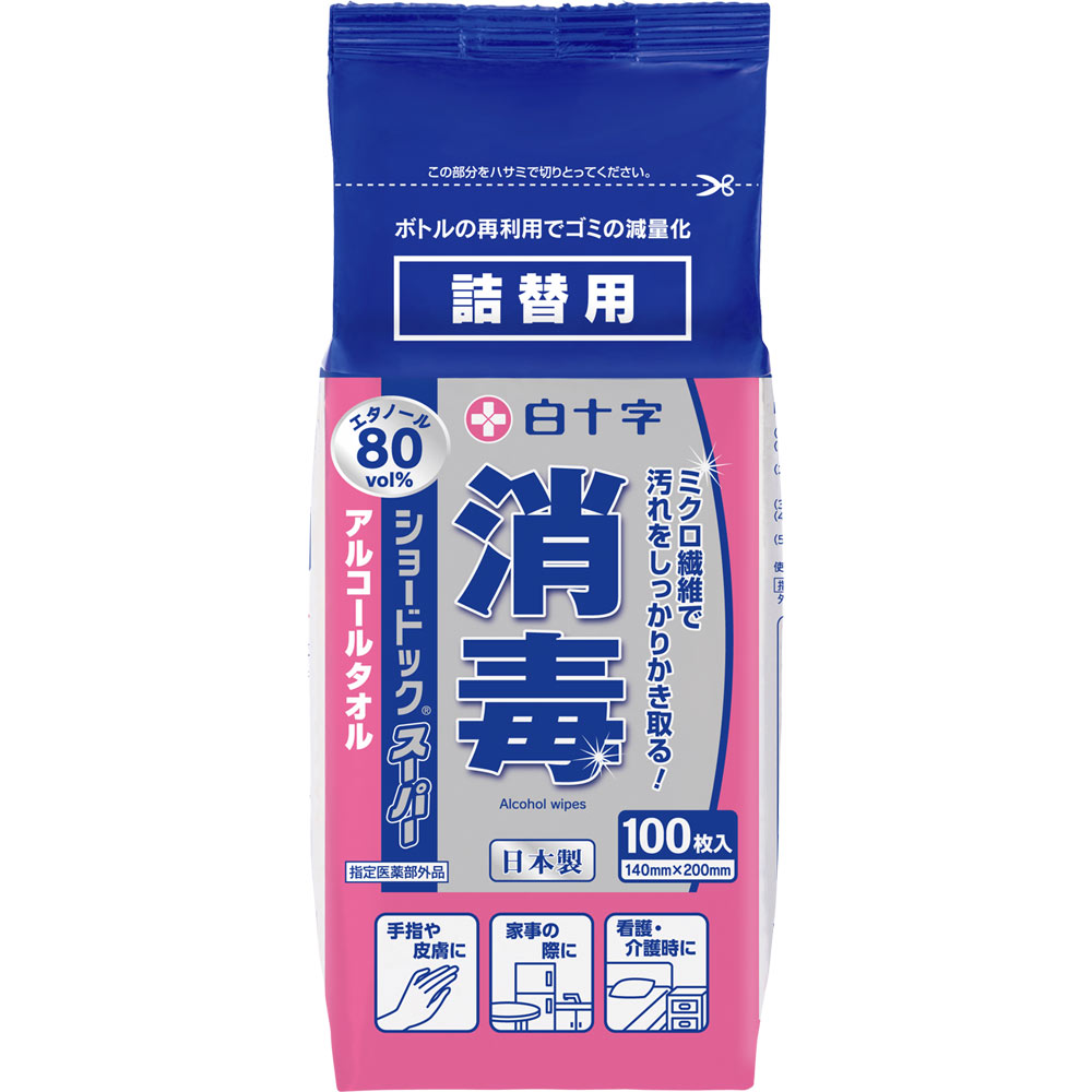 ミクロ繊維で汚れをしっかりかき取る!エタノール80vol%アルコールタオル●手指・皮膚の洗浄・消毒●汚れの拭きとりこんなときにおすすめ●家事の際に●看護・介護時にショードックの不織布には旭化成のベンリーゼを使用しています。寸法:140mm×200mm