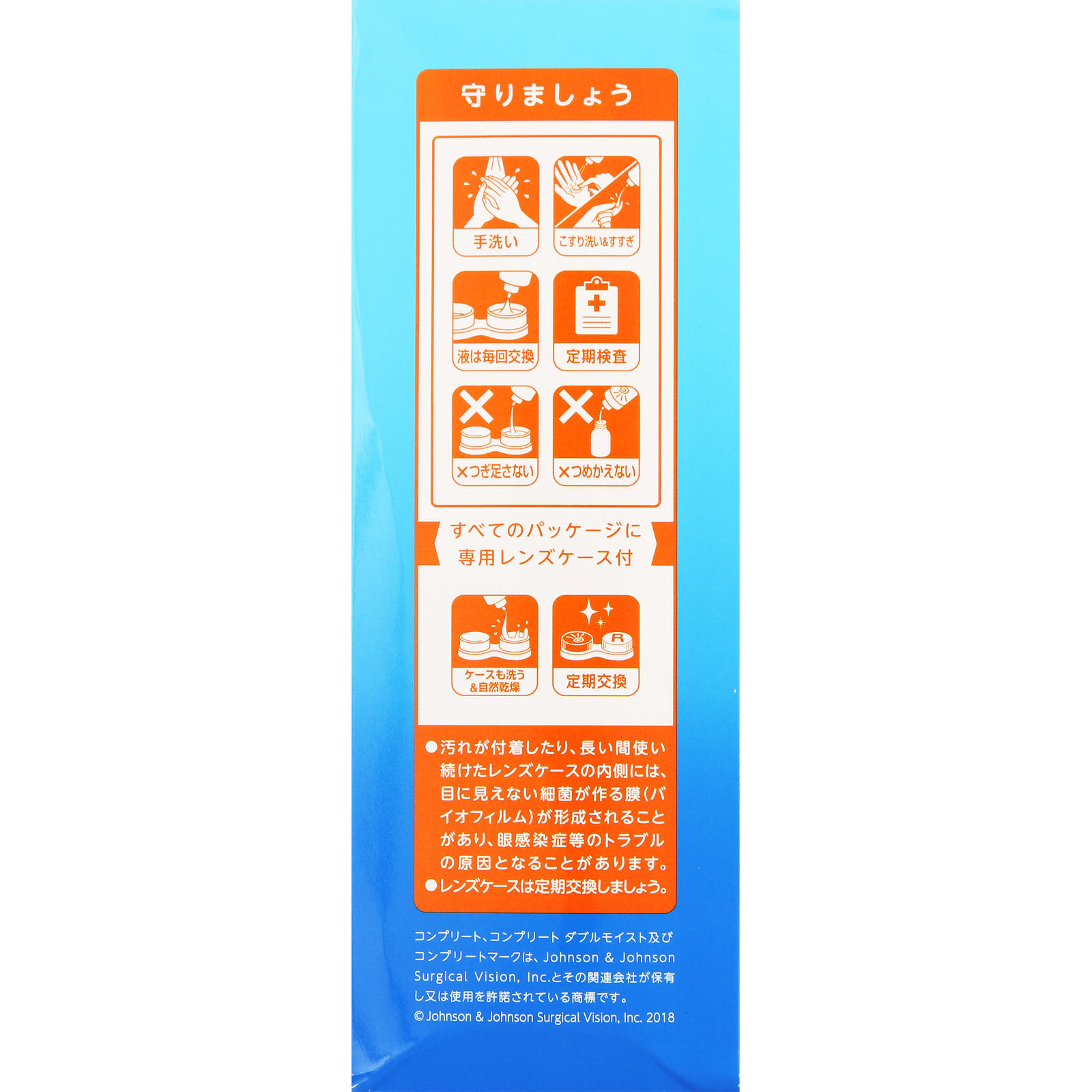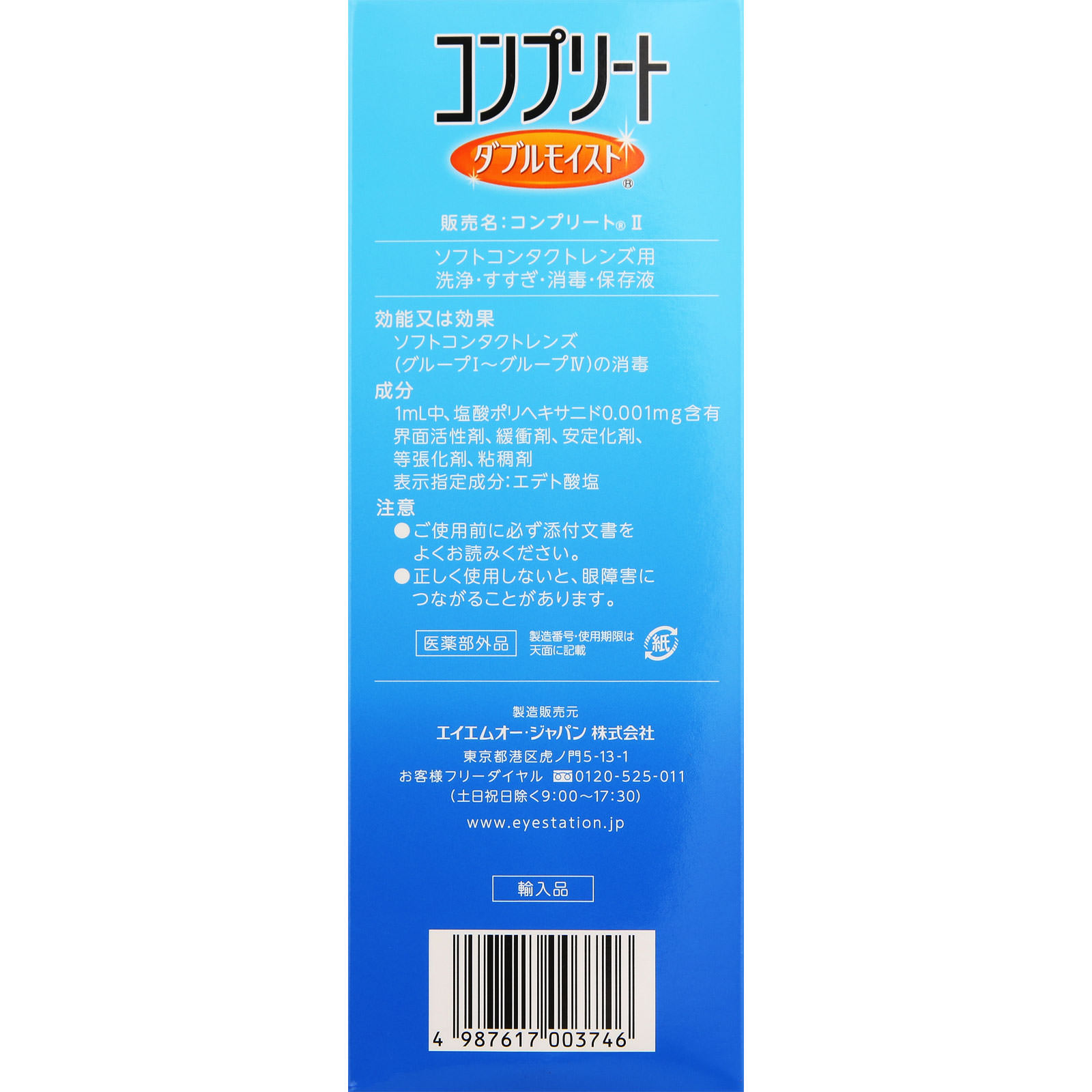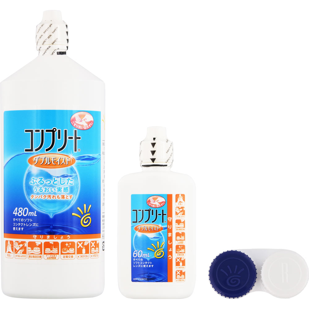 お買得品携帯にも便利な60mL付き限定スペシャルパックこれ1本 洗浄 すすぎ 消毒 保存 タンパク除去輸入品シリコーン素材のソフトレンズを含むすべてのソフトコンタクトレンズに使えます○ぷるっとしたうるおい実感レンズを「うるおいコーティング」。レンズの乾きを防ぎ、快適な装用感を実現。○優れた消毒・洗浄効果眼感染症の原因となる細菌・真菌等に対して優れた消毒効果を発揮。○タンパク汚れも落とすタンパク汚れもしっかり落とし、クリアな視界を実現。○自然な涙に近い自然の涙に近い性状で眼にやさしい。ソフトコンタクトレンズ用洗浄・すすぎ・消毒・保存液コンプリート ダブルモイストは、「ダブルのうるおい成分」でレンズの乾燥を防ぎ、また、優れた消毒・洗浄効果でタンパク汚れも除去する、1本タイプのソフトコンタクトレンズケア用品です。