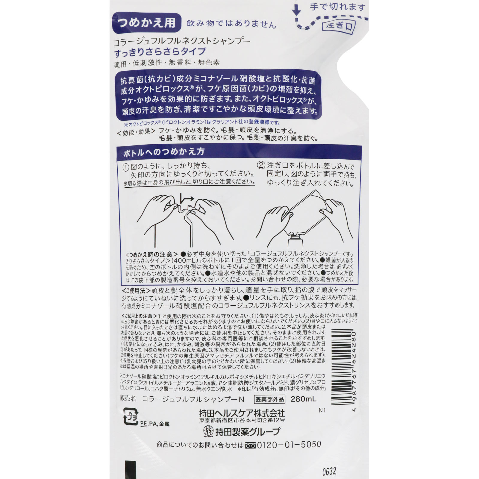 頭皮が脂っぽい方に薬用・低刺激性・無香料・無色素抗真菌(抗カビ)成分ミコナゾール硝酸塩と抗酸化・抗菌成分オクトピロックスが、フケ原因菌(カビ)の増殖を抑え、フケ・かゆみを効果的に防ぎます。また、オクトピロックスが、頭皮の汗臭を防ぎ、清潔ですこやかな頭皮環境に整えます。