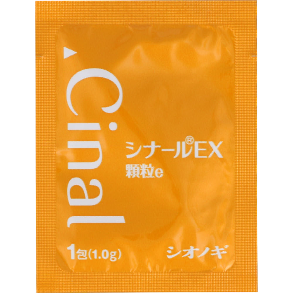 しみ、そばかす、肌荒れなどに効果的な、ビタミンC製剤。ビタミンC主薬製剤人は、体の中でビタミンCをつくることができないため、毎日摂取することが大切です。シナールEX顆粒eは、ビタミンCの補給に適したビタミン剤で、口の中でさっと溶けるのみやすい顆粒です。またビタミンCとともに抗酸化作用をもつ天然型ビタミンE、皮ふの正常な働きをサポートするビタミンB2を配合しています。