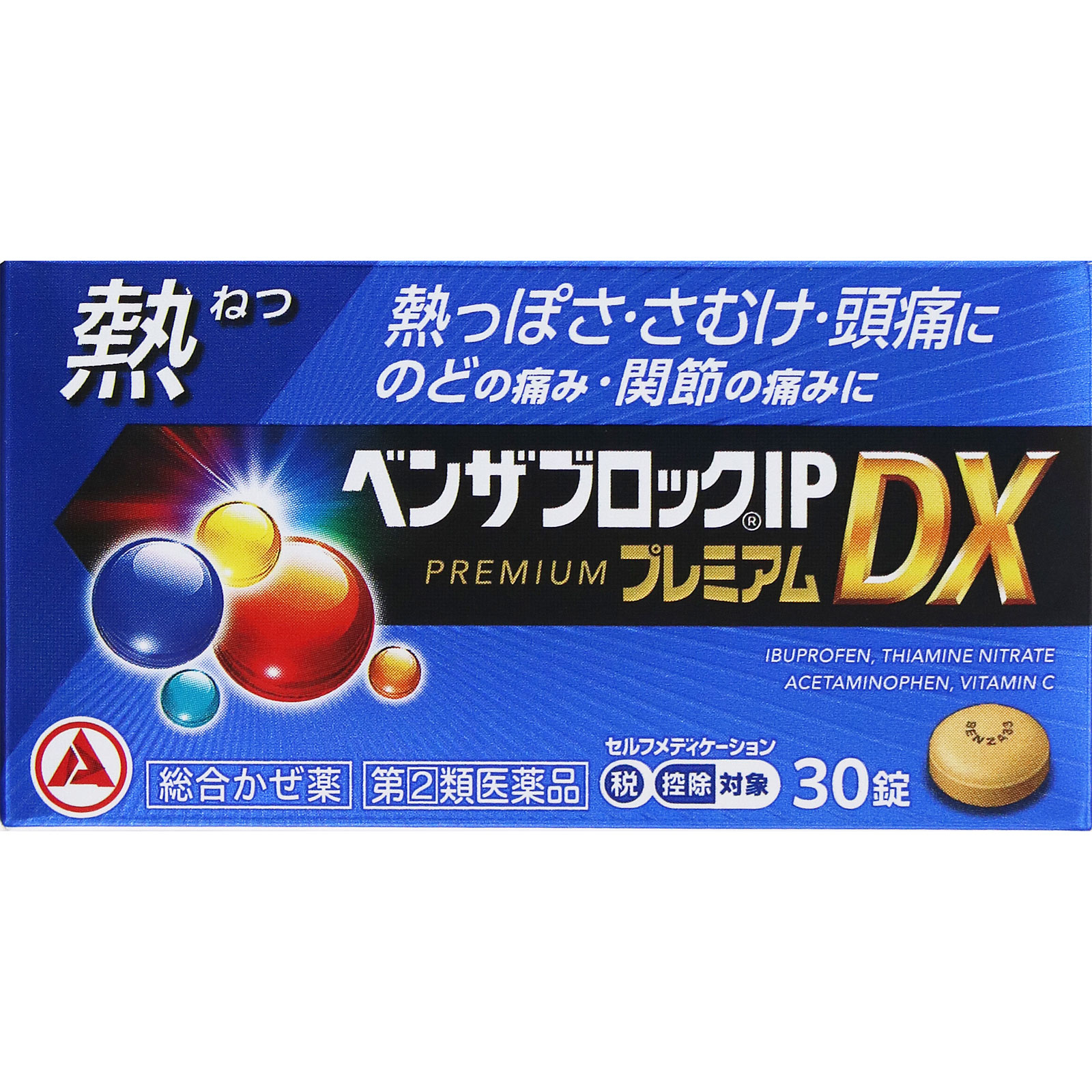 熱や鼻、せきなどのつらいかぜの諸症状に効果を発揮する総合感冒薬。●イブプロフェンとアセトアミノフェンの2種の解熱鎮痛成分がはたらき、のどの痛みをおさえ、熱を下げます。●チアミン硝化物が、かぜによって消耗した体力の回復を促します。●アスコルビン酸カルシウムが、かぜの時に消耗しやすいビタミンCを補給します。●9種の成分を配合し、かぜのいろいろな症状を緩和します。●のみやすい小型の淡黄褐色の円形の錠剤です。