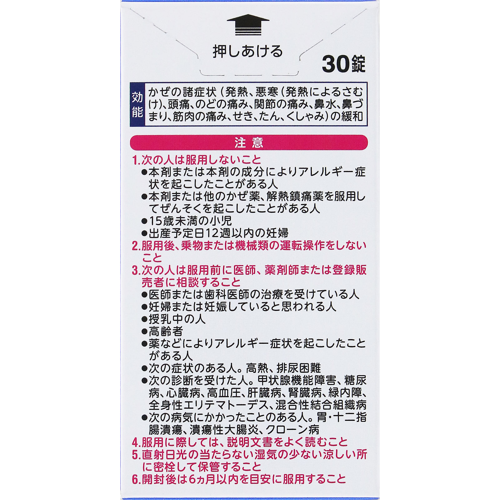 4.5~6回服用しても症状がよくならない場合(特に熱が3日以上続いたり、また熱が反復したりするとき)は服用を中止し、この文書を持って医師、薬剤師または登録販売者に相談すること