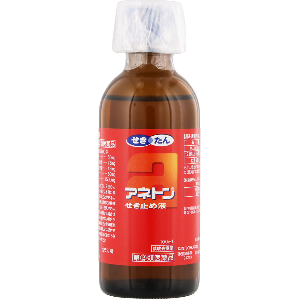 のどの調子を整える生薬セネガを配合したせき止め薬。鎮咳去痰薬アネトンせき止め液は、いろいろな原因で起こる“せき”をしずめ“たん”の切れをよくします。また、さわやかなレモンティー風味の液剤です。